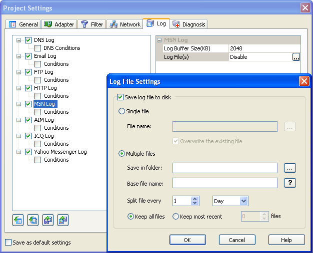 To enable MSN log settings, you have to tick in the box next to "MSN Log".