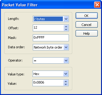In addition to make simple filters by address, port and protocol, you can also choose packet size, packet value and packet pattern as filter parameters, which are available in the Advanced Filter page. Advanced filters are unique to Colasoft Capsa enterprise edition.